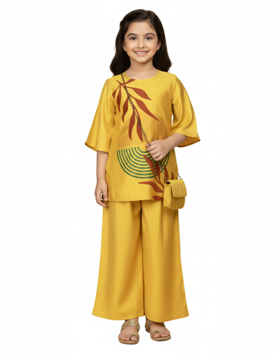 Experience effortless ethnic chic with the J Plus Kurti Cord Set 753. Crafted from cotton-rich fabric, this mustard-colored kurti set combines comfort and style, offering a soft, skin-friendly feel perfect for all-day wear. The matching palazzo pants enhance mobility while maintaining a graceful silhouette. Included with a coordinating purse, this set ensures a complete, polished look ideal for traditional occasions or casual outings.